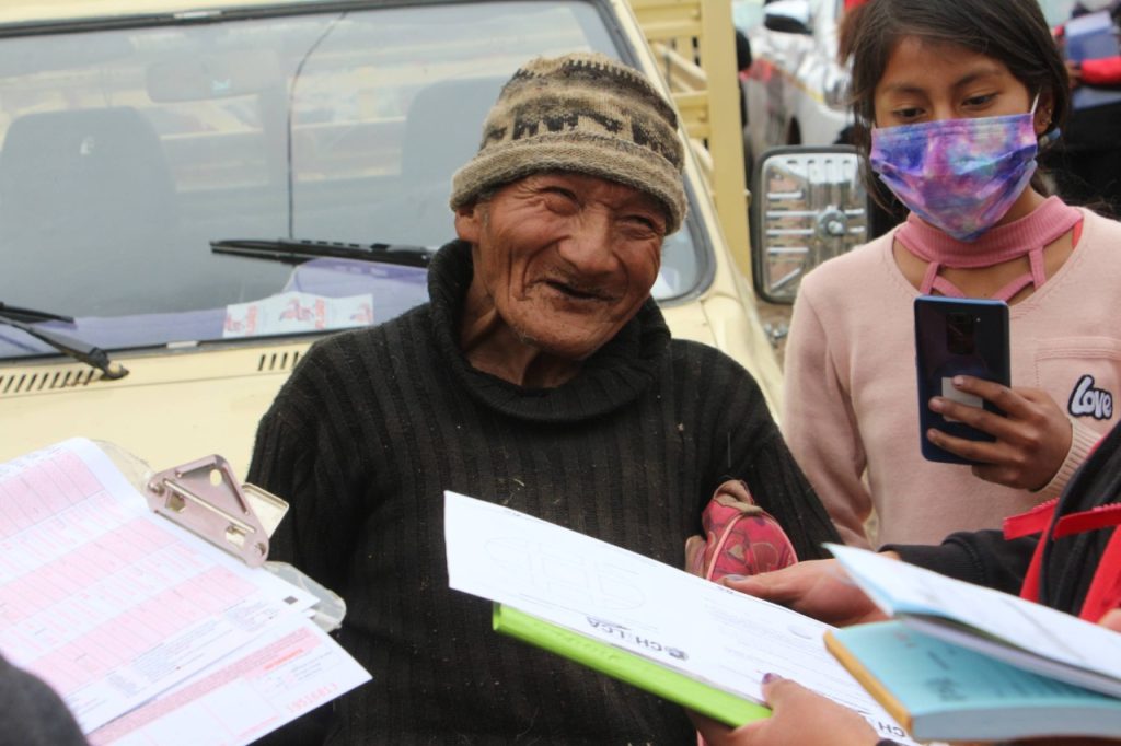 La responsable de CIAM, Lucy Quinto Romaní, hizo el empadronamiento del anciano en Sisfoh para que acceda al programa del Vaso de Leche y reciba su Pensión 65, para que pueda sostenerse, pues sus familiares lo habrían dejado a su suerte.