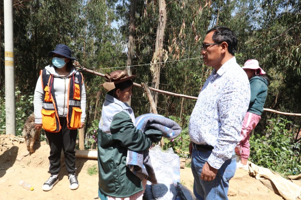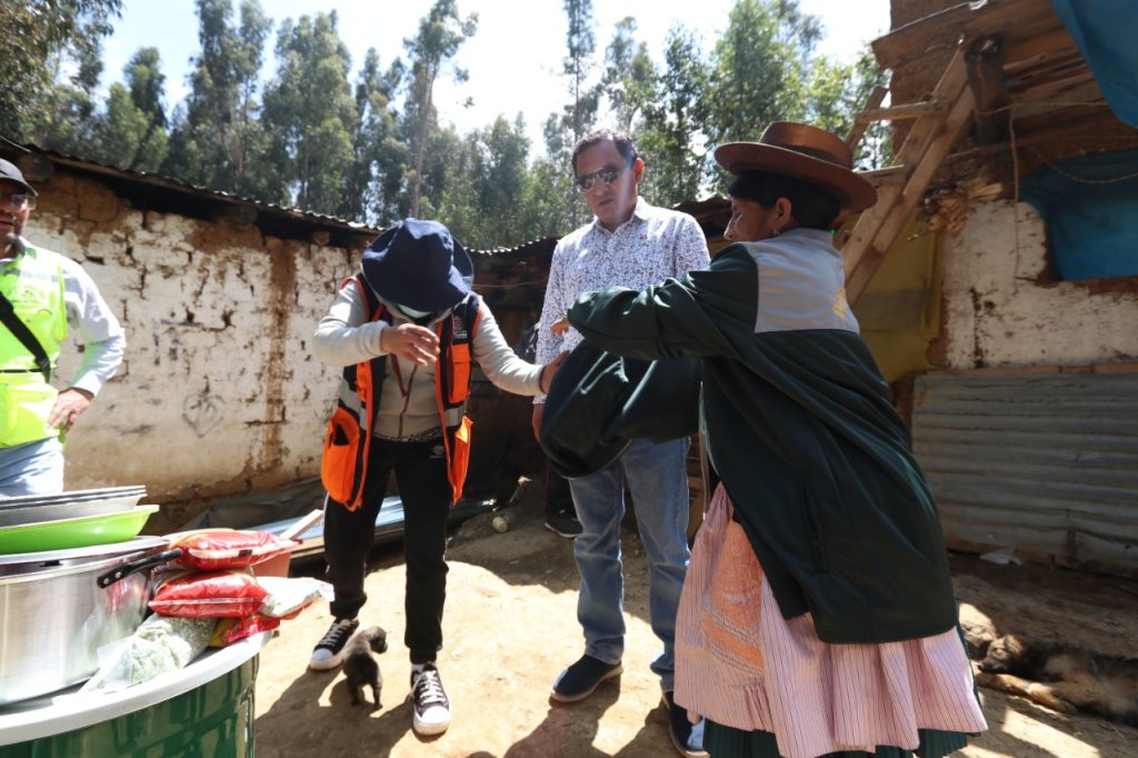Una pareja de ancianos que viven en situación de extrema pobreza, se vio afectada por las inclemencias de la naturaleza, debido a que su vivienda que estaba construido de adobe colapso, por lo que el alcalde del distrito de El Tambo como presidente de la Plataforma de Defensa Civil Carlo Curisinche, llevó ayuda humanitaria.