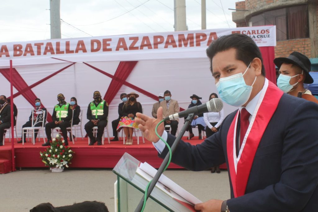 El alcalde de Chilca, Carlos De La Cruz Sullca, lideró la celebración desarrollada en el óvalo de Azapampa, donde junto al jefe de la sexta macro región policial Junín Huancavelica, general Roger Arista, el jefe de la región policial Junín, César Ramos, la Municipalidad de Huancayo, la Minera Chinalco y la junta directiva de la comunidad campesina de Azapampa, rindieron un sentido homenaje a los valientes azapampinos, que se enfrentaron al poderoso ejército español para consolidar el proceso de la independencia del Perú.