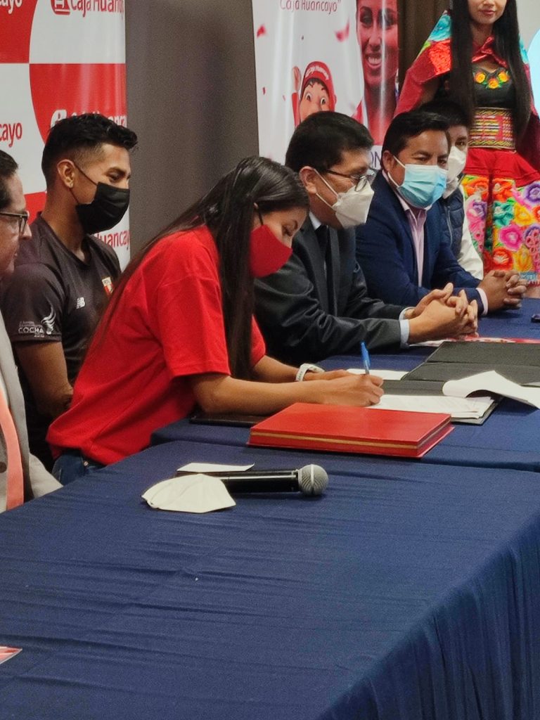 El importante acto se realizó en conferencia de prensa ayer (miércoles) entre la atleta Kimberly García León y el Presidente del Directorio de Caja Huancayo Jorge Solís Espinoza, quien indicó que entre sus principales beneficios se encuentran la dotación de implementos deportivos, asistencia técnica, bienes deportivos e infraestructura deportiva.