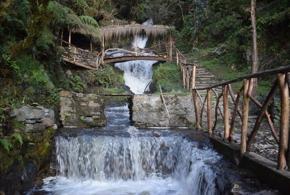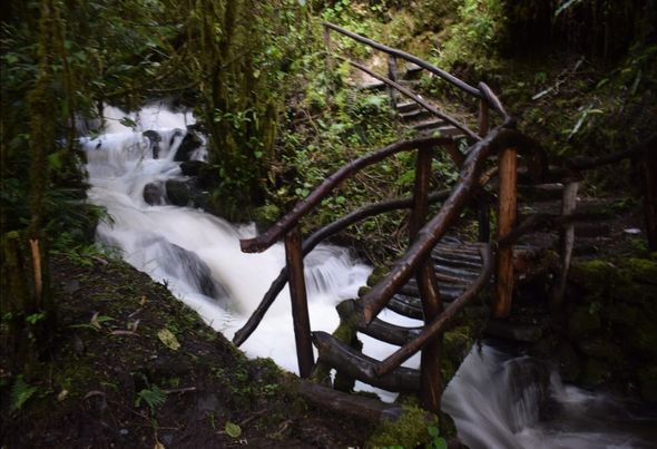 El sendero que conduce a las cataratas está acondicionado con puentes de palos, asientos para descansar y adornado con bromelias y otras variedades de flora nativa. Al inicio de este recurso turístico encontramos una cabaña construida con elementos propios de la zona que sirve como descanso y mirador.