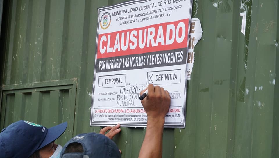 La policía Municipal de Río Negro, la Sub gerencia de servicios municipales, asesoría legal, sub gerencia de catastro, defensa civil y con resguardo de efectivos policiales se llevó a cabo la clausura definitiva de 37 establecimientos clandestinos ubicados en el Jr. Las Dalias.