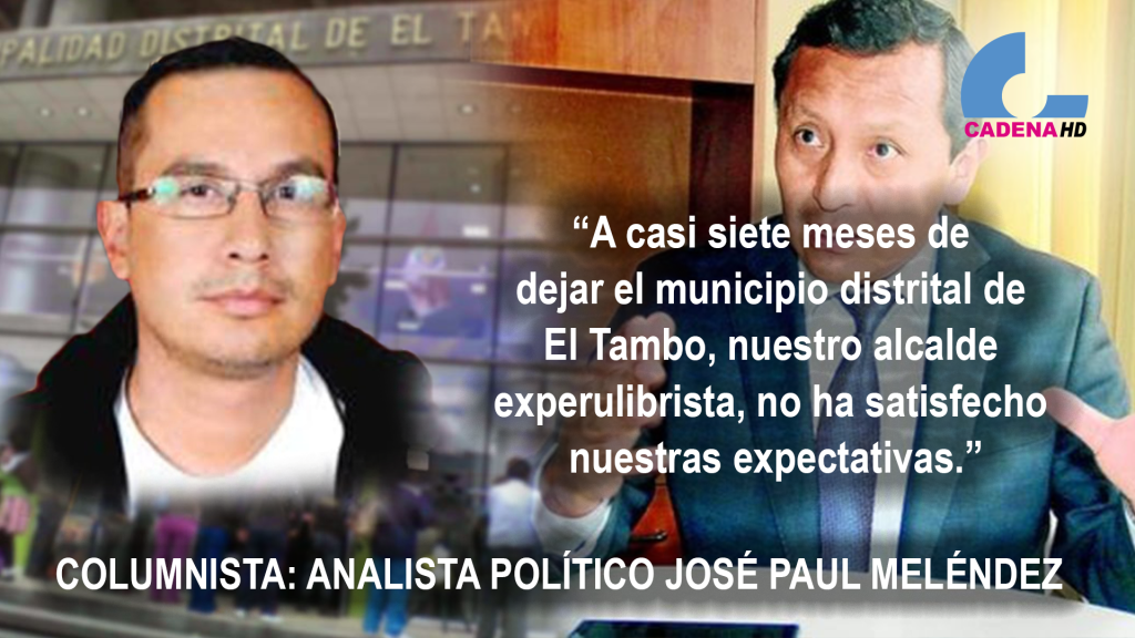 La coyuntura política nacional nos está descuidando del ámbito regional y local. Es necesario el reconocer lo bueno (en caso exista) y cuestionar y denunciar lo malo (lo que vemos a diario) en una gestión regional y sobretodo de nuestros gobierno locales, distritales. A casi siete meses de dejar el municipio distrital de El Tambo, nuestro alcalde experulibrista, no ha satisfecho nuestras expectativas.