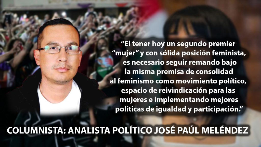 Por tanto, el tener hoy un segundo premier “mujer” y con sólida posición feminista, es necesario seguir remando bajo la misma premisa de consolidad al feminismo como movimiento político, espacio de reivindicación para las mujeres e implementando mejores políticas de igualdad y participación. No basta con los logros alcanzados, hay mucho por hacer, porque aún persisten problemas como la violencia de género, analfabetismo, muertes materno-infantiles, abortos clandestinos por mencionar problemas con rostro de mujer.