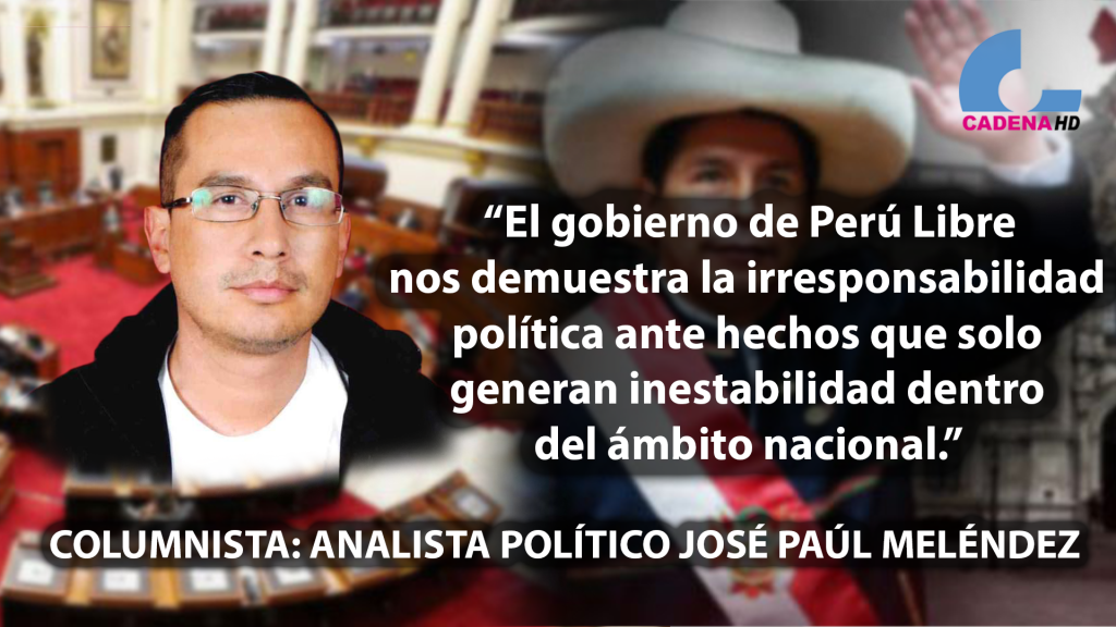La prensa, una vez más, nos ha demostrado la irresponsabilidad del cuestionado Ministro del Interior, la semana pasada lo cité cuando expresaba mi opinión sobre el voto de confianza al nuevo gabinete encabezado por la señora Mirtha Vásquez, hoy una vez más el gobierno de Perú Libre nos demuestra la irresponsabilidad política ante hechos que solo generan inestabilidad dentro del ámbito nacional.