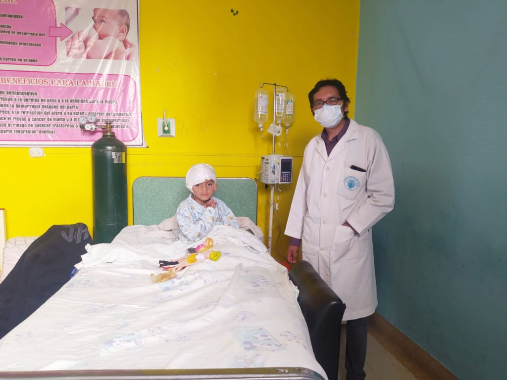 A consecuencia de esto, ingresa a Sala de Operaciones con apenas esperanzas de salvarle la vida, es intervenido quirúrgicamente el mismo día de su ingreso, realizándole Craniectomía Descompresiva (procedimiento quirúrgico en el que parte del cráneo se elimina para otorgar espacio para expandirse a una inflamación del cerebro) , realizada por nuestro Neurocirujano Pediatra, Carlos Amaro Salinas.