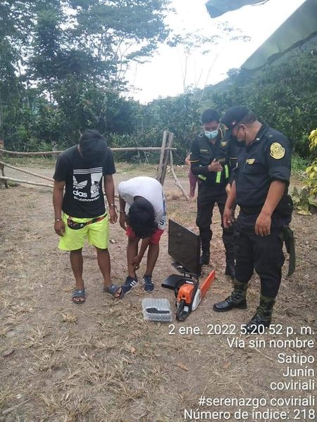 Los Serenos junto a la PNP se dirigieron al sector Palestina cercado Coviriali donde los pobladores tenían atrapado a dos presuntos ladrones quienes habían sustraído un televisor, un DVD, una Motosierra, un blu-ray y un celular.