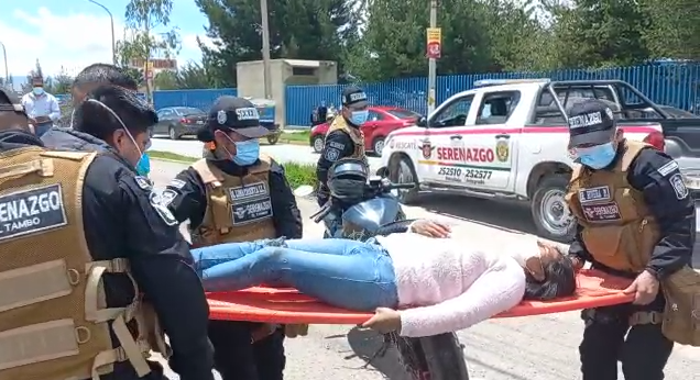 Eran promediar las 12:15 cuando los serenos se encontraban patrullando por las intersecciones de la av. huancavelica y el jr. pablo neruda donde vieron como una moto lineal de despistó dejando mal heridos a sus ocupantes.