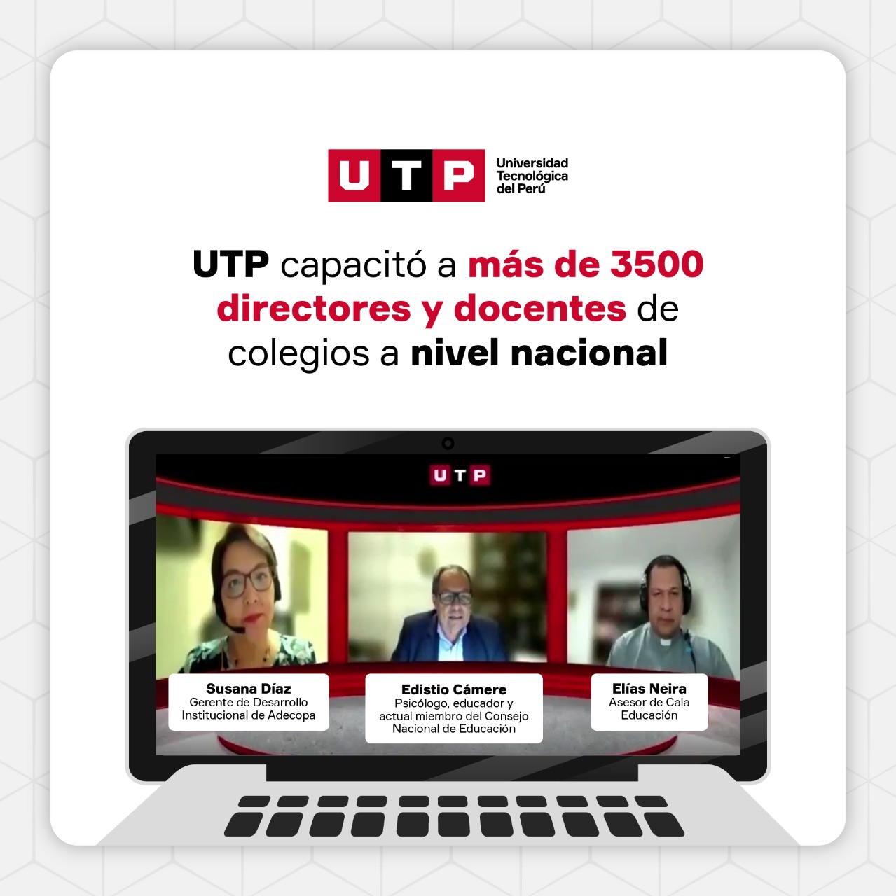 La Universidad Tecnológica del Perú (UTP) realizó el IX Encuentro Nacional de Directores, evento virtual que contó con la participación de más de 3500 docentes y directores de secundaria de más de 20 ciudades del país.