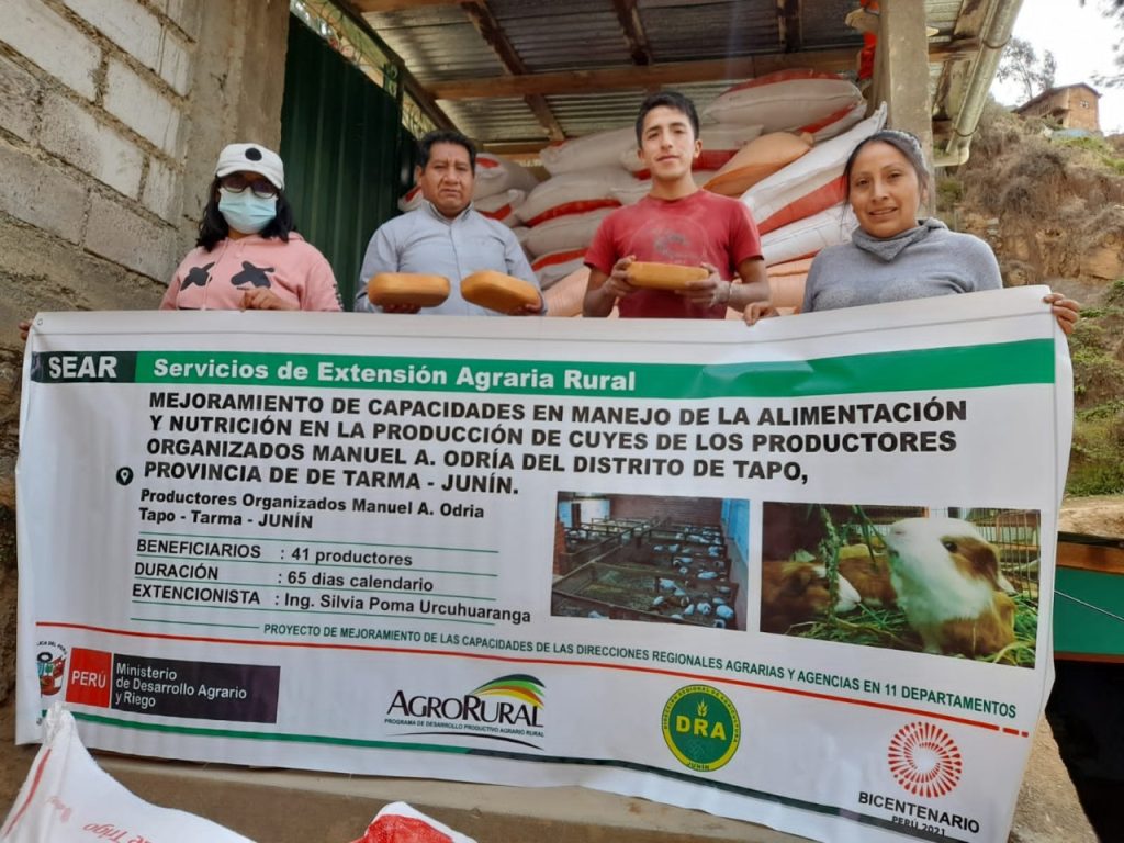 Esta vez cinco agencias agrarias de la Dirección Regional de Agricultura Junín (DRAJ), lograron conseguir financiamiento para la ejecución de subproyectos en favor de quince asociaciones de productores de sierra y selva, principalmente de las cadenas productivas de café especiales, jengibre, cúrcuma, palto, papa nativa, cuy y vacunos de leche, con un fondo de 480 000 soles, esto después de participar en el segundo concurso de Servicios de Extensión Agraria Rural 2021 (SEAR), que tiene como finalidad la promoción del desarrollo agrario rural a través del financiamiento de inversiones en zonas rurales en el ámbito agrícola.