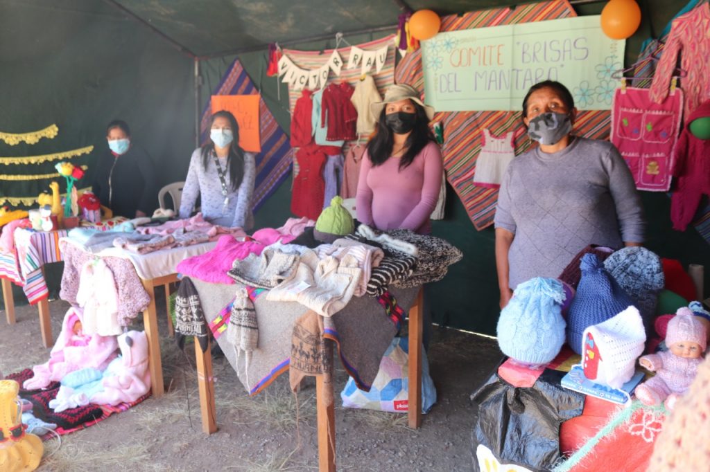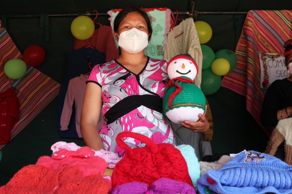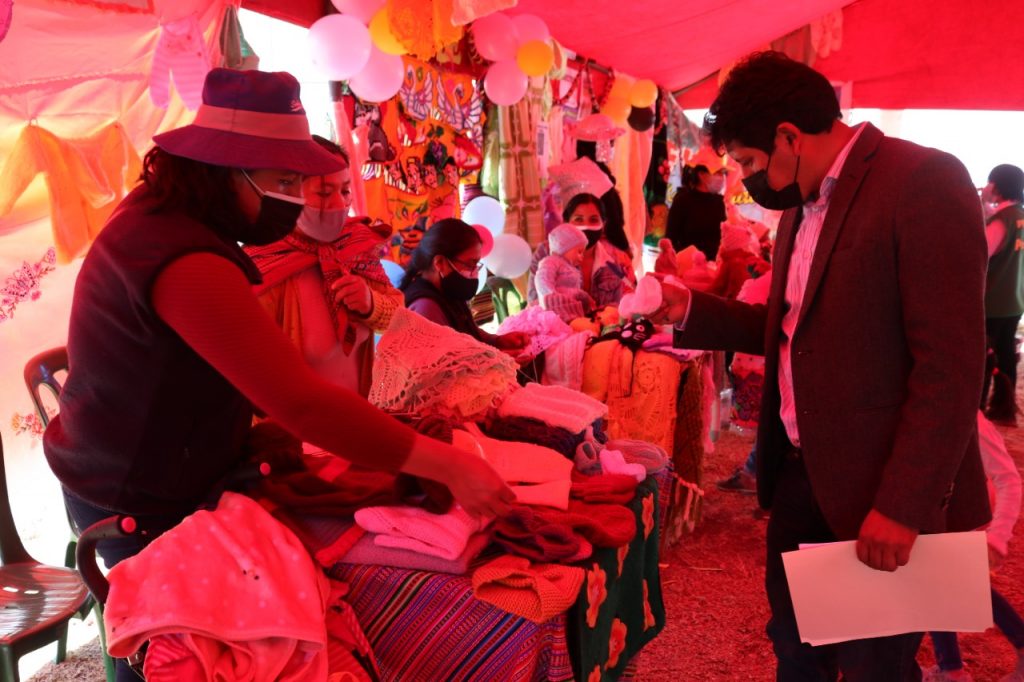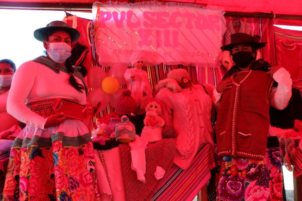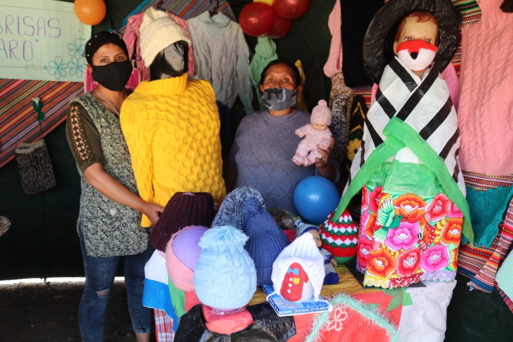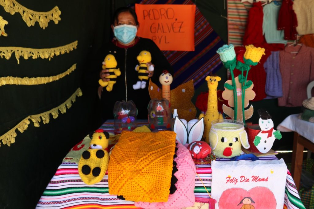 Se pudo apreciar tejidos como chompas, abrigos, chalinas, guantes, tapetes para sala, tejidos para utensilios, entre otros trabajos han sido un salvavidas para las familias durante la pandemia por el Covid-19.