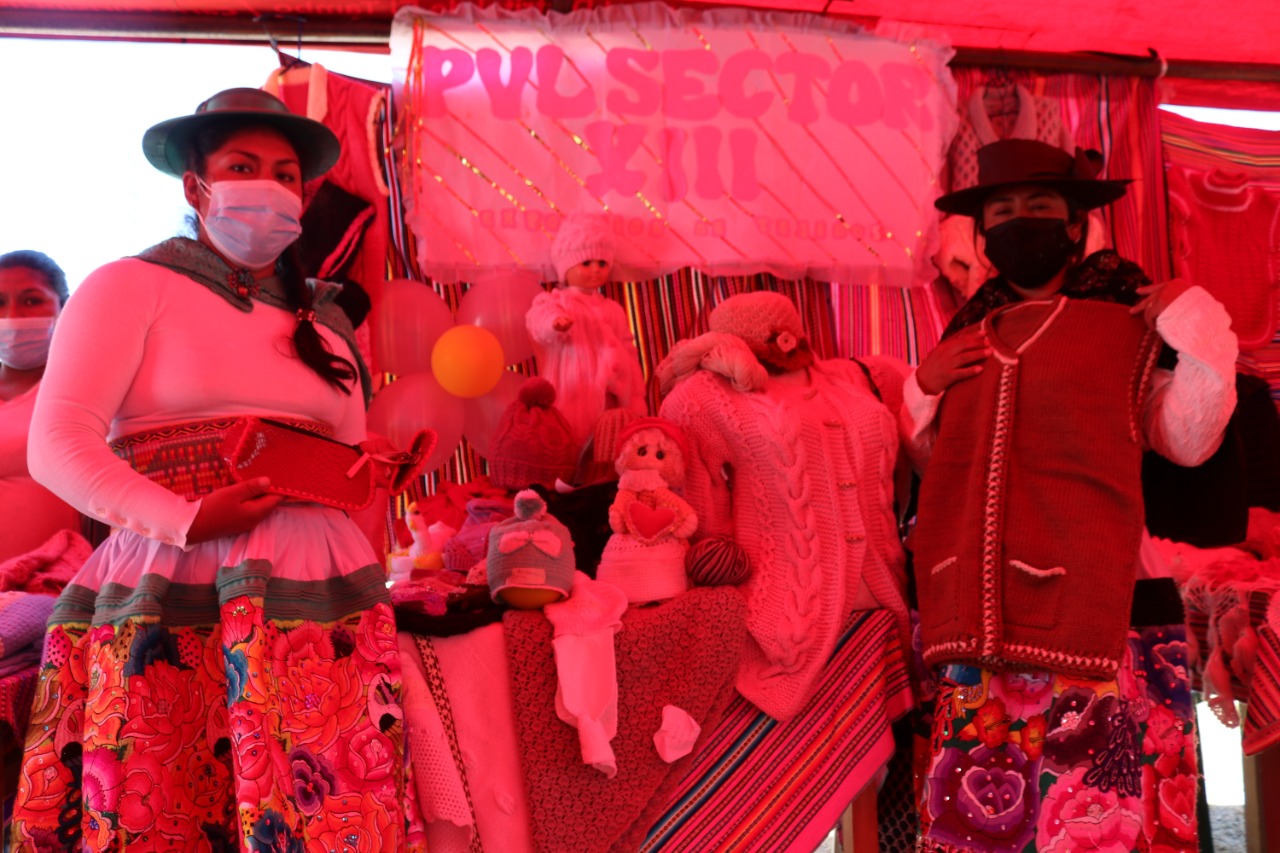 Para fortalecer el trabajo que realizan las mujeres, se realizó la exposición y venta de tejidos, donde representantes de 26 comités del sector 1 que pertenece al Asentamiento Humano Justicia Paz y Vida.