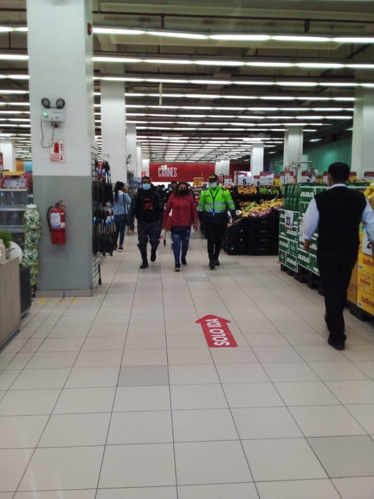 Agentes de seguridad ciudadana retuvieron a una presunta delincuente en uno de los ambientes del C.C Real Plaza en su poder tenía una bolsa con productos de primera necesidad.