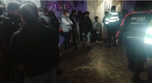 Durante el patrullaje serenos de Chilca fueron alertados por vecinos del sector de Azapampa, acerca de una fiesta que incomodaba por el bullicio.