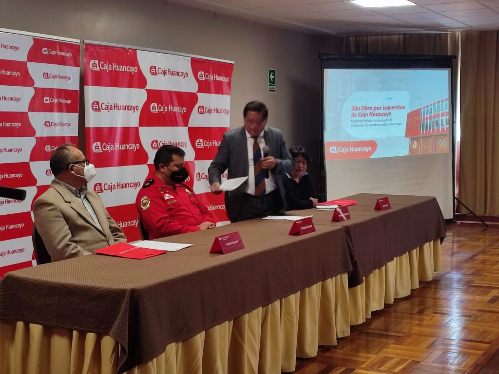 El Presidente del Directorio de Caja Huancayo, Jorge Solís Espinoza, indicó que Caja Huancayo es la primera Caja Municipal de Ahorro y Crédito en hacer uso del mecanismo de obra por impuestos en el marco de la Ley Nº 30608 y se encuentra honrados en poder brindar este aporte a los hermanos bomberos voluntarios.