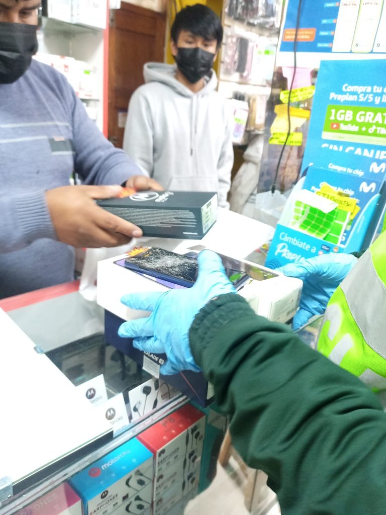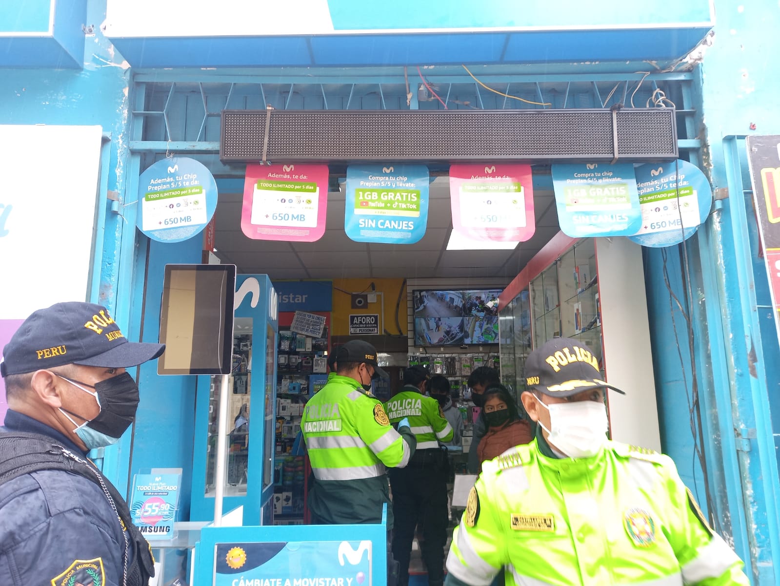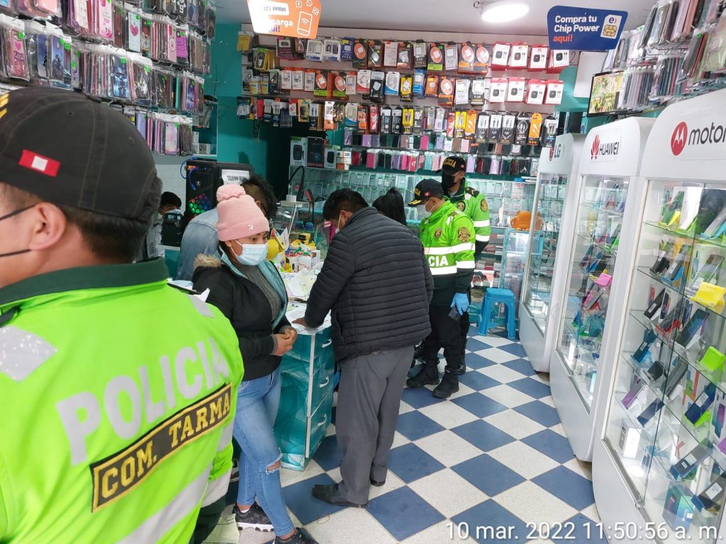 En un operativo policial, encabezado por el comandante PNP Luis Castellares, se intervino a varias tiendas comerciales que se dedicaban a la venta de celulares, donde ingresaron la Policía Nacional, la fiscal del Ministerio Público Dra. Luz Evelina Soriano Michue, Defensa Civil, Serenazgo de Tarma, Policía Municipal en conocer si los productos eran óptimos para su venta.