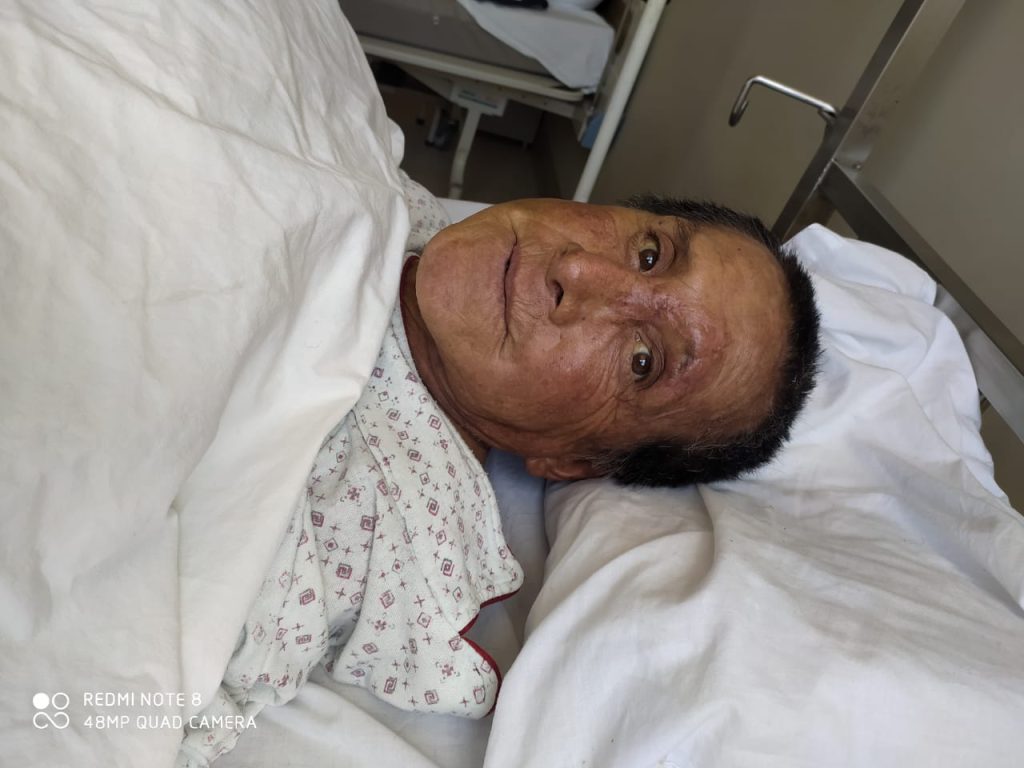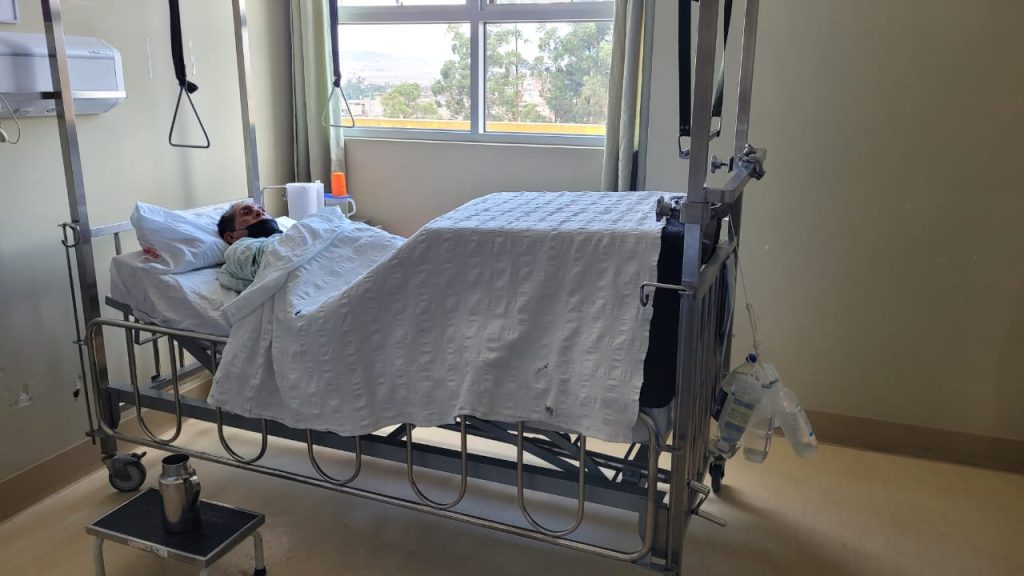 Actualmente el paciente se encuentra hospitalizado en la cama 431-B con múltiples problemas: Anemia severa, psoriasis, fractura Intertrocantérica y subtrocantérica del fémur izquierdo, por lo que requiere intervención quirúrgica y por ende materiales de operación los cuales ya fueron solicitados al Seguro Integral de Salud y se encuentra a la espera de los mismos.