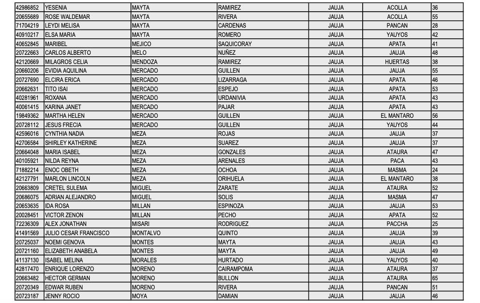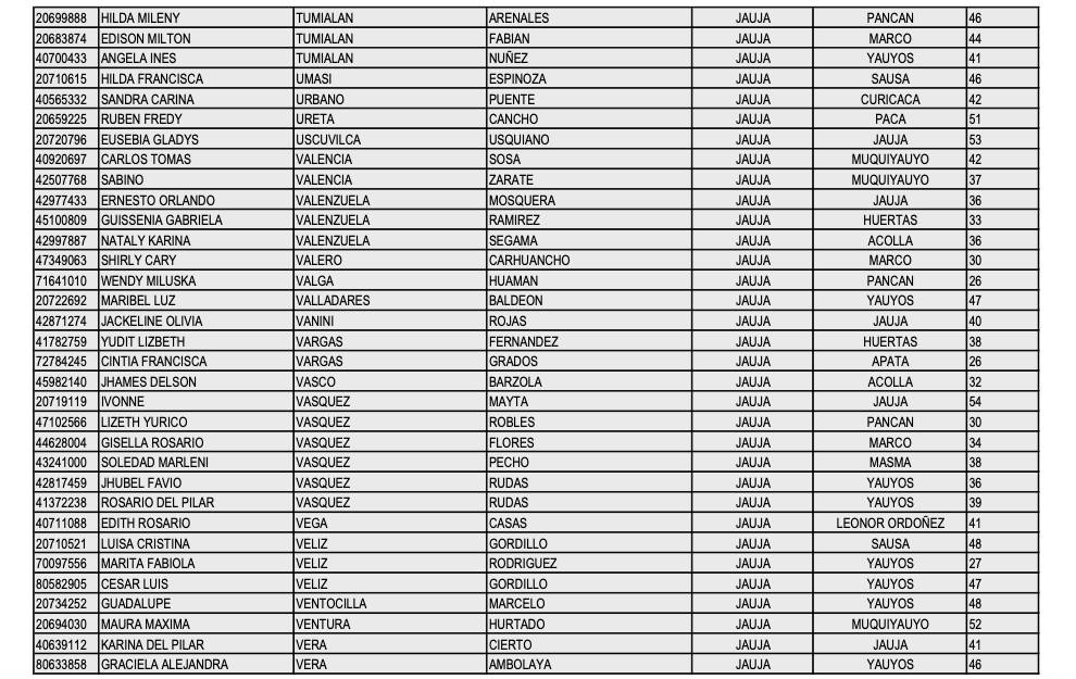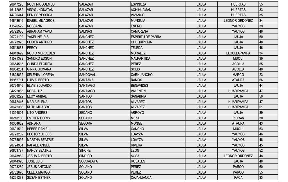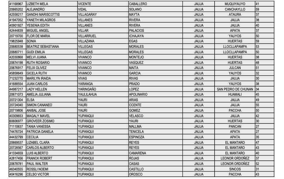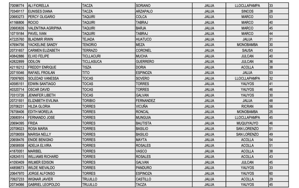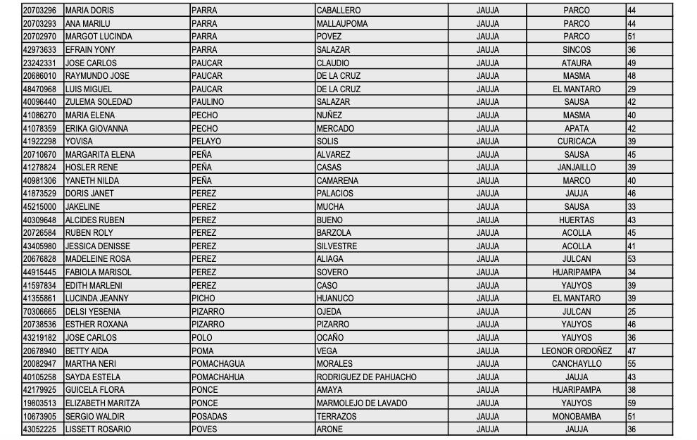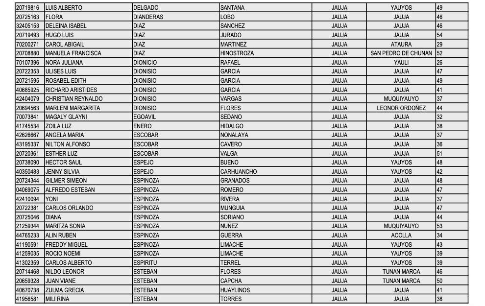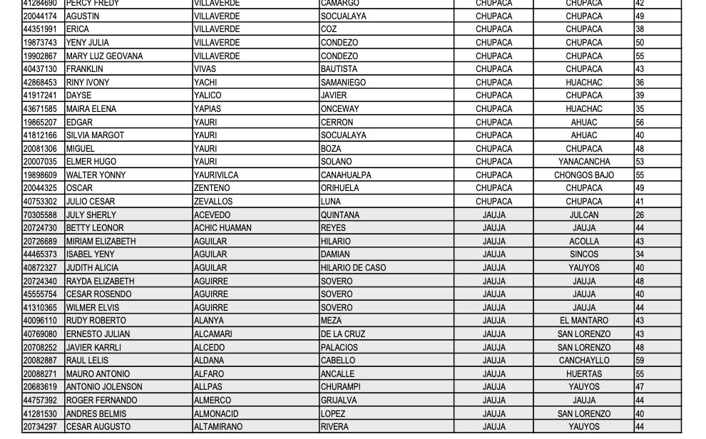 Relación de MAESTROS JAUJINOS que recibirán la primera dosis de la vacuna contra el Covid 19, los días 6,7 y 8 de julio.