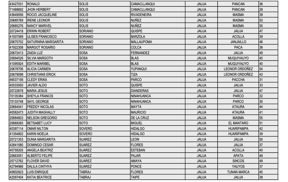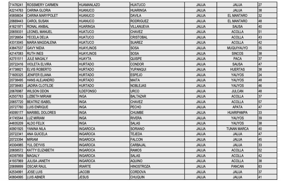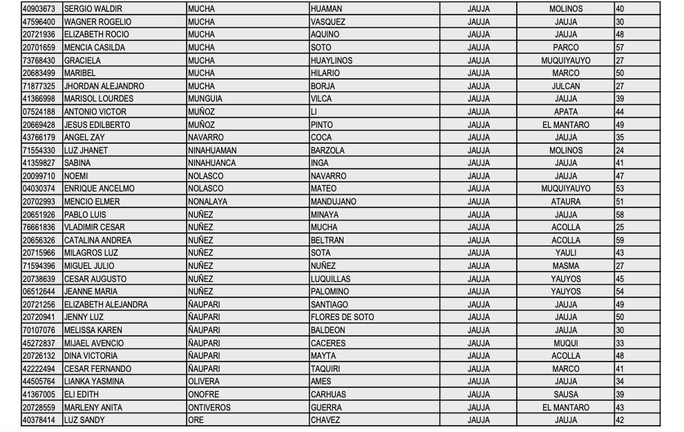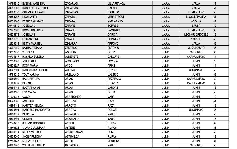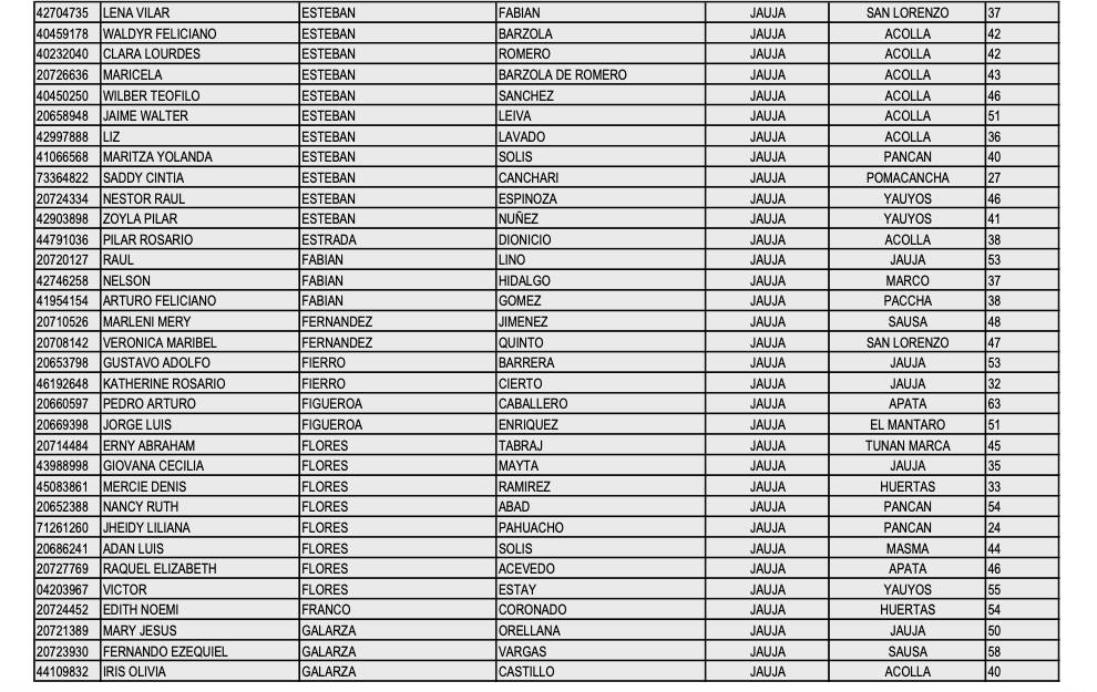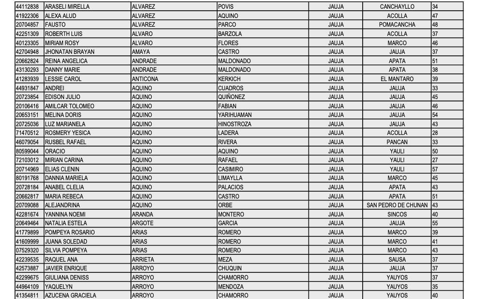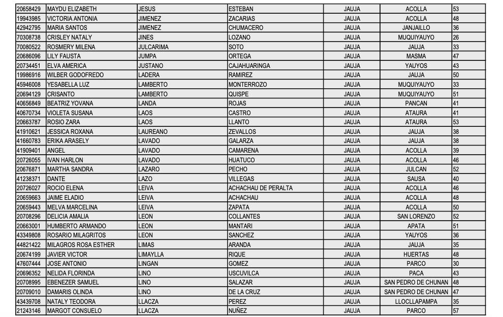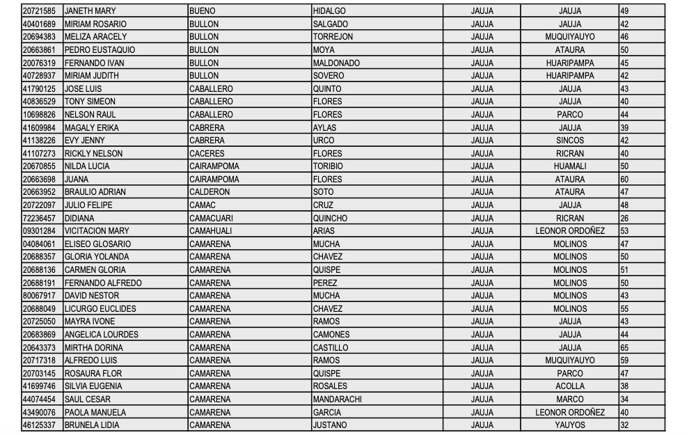 Relación de MAESTROS JAUJINOS que recibirán la primera dosis de la vacuna contra el Covid 19, los días 6,7 y 8 de julio.