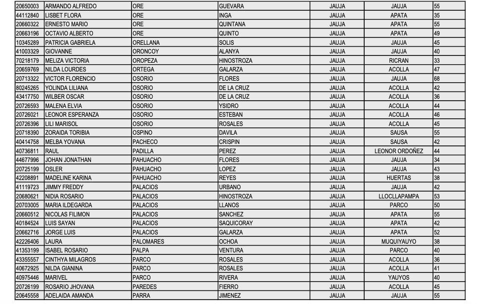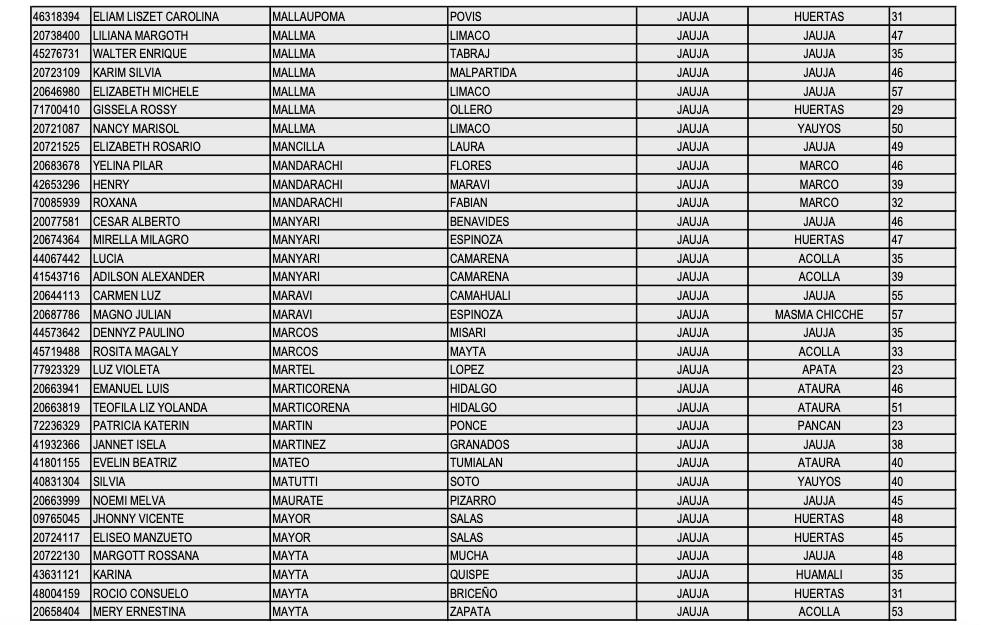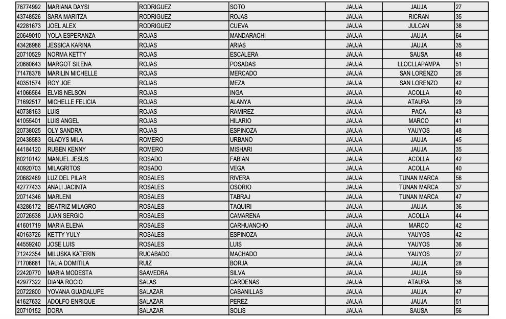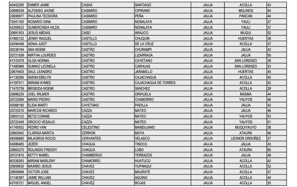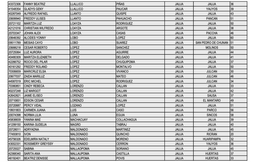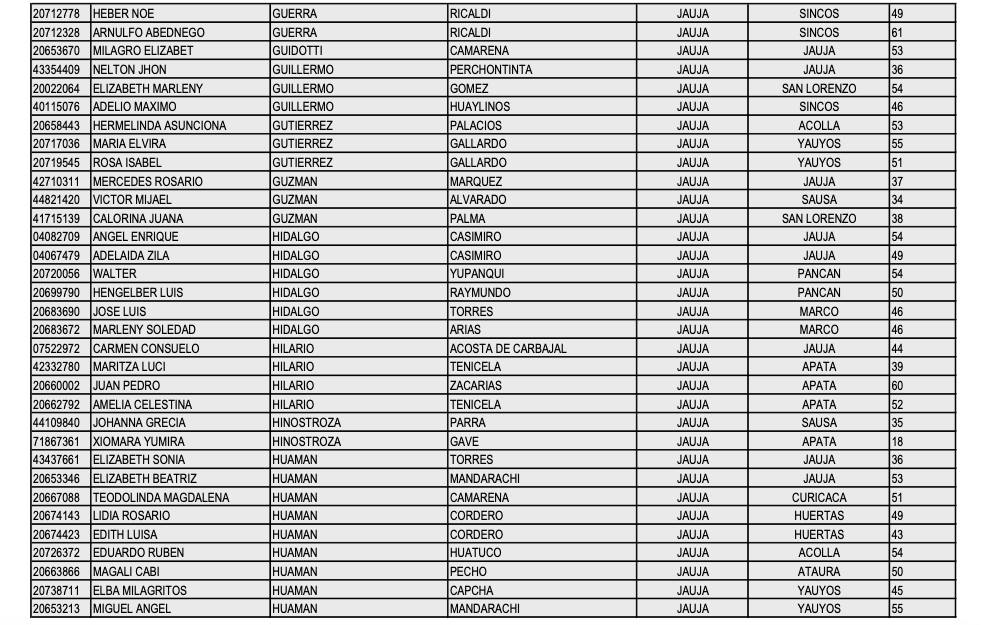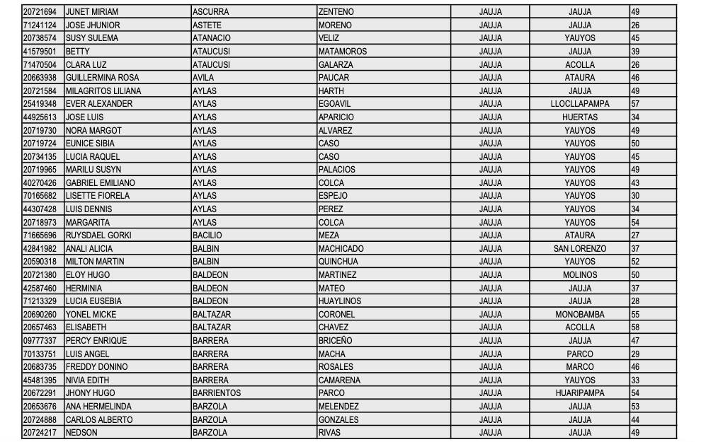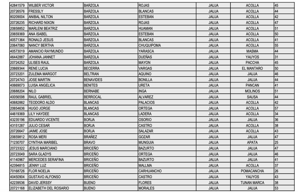 Relación de MAESTROS JAUJINOS que recibirán la primera dosis de la vacuna contra el Covid 19, los días 6,7 y 8 de julio.