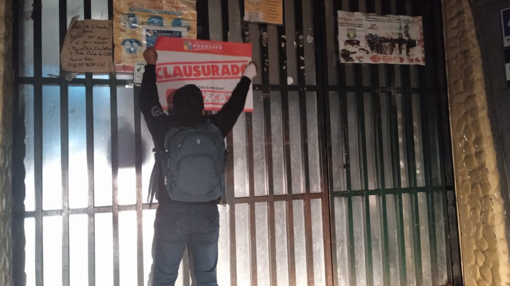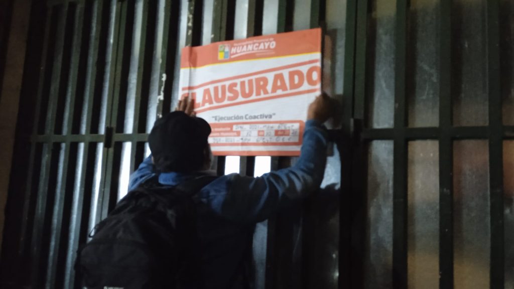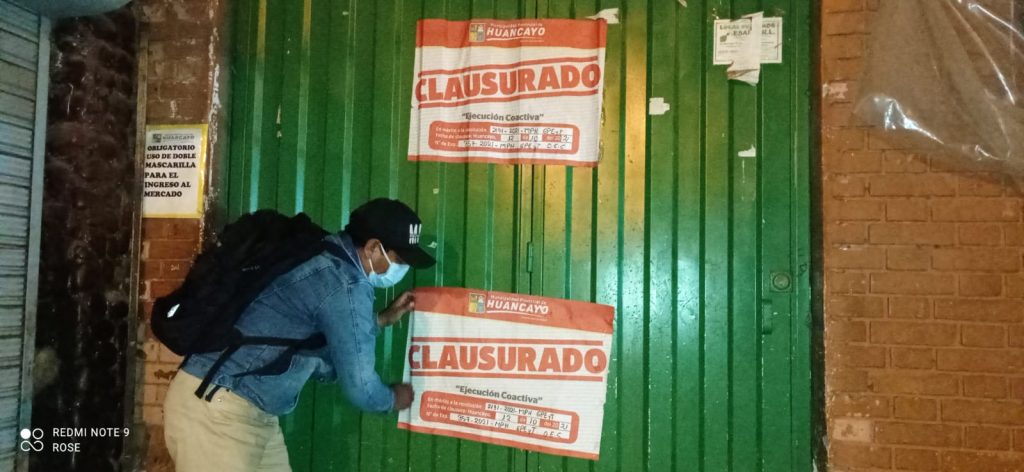 La Oficina de Ejecución Coactiva ejecutó por la noche la clausura temporal del Mercado Modelo de Huancayo sanción impuesta por la Gerencia de Promoción Económica y Turismo de la Municipalidad Provincial de Huancayo esta tarde por el incumplimiento de protocolos de bioseguridad en la mayoría de los puestos de venta.