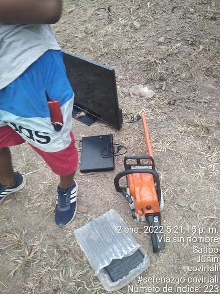 Los Serenos junto a la PNP se dirigieron al sector Palestina cercado Coviriali donde los pobladores tenían atrapado a dos presuntos ladrones quienes habían sustraído un televisor, un DVD, una Motosierra, un blu-ray y un celular.