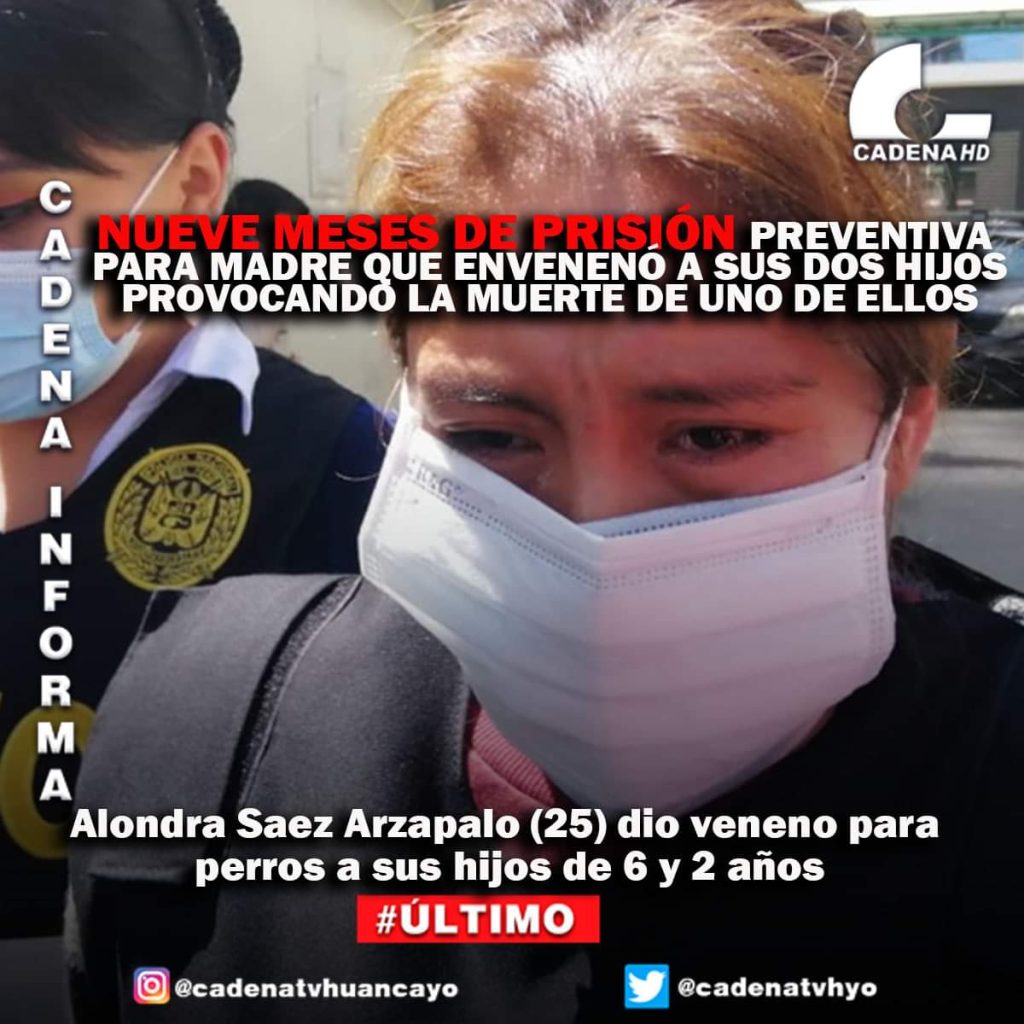 Dictan nueve meses de prisión preventiva a Alondra Saez Arzapalo (25), quien envenenó a sus dos hijos provocando la muerte del de 6 años y llevándolo al hospital al pequeño de dos años, donde afortunadamente los médicos de El Carmen pudieron salvarlo.