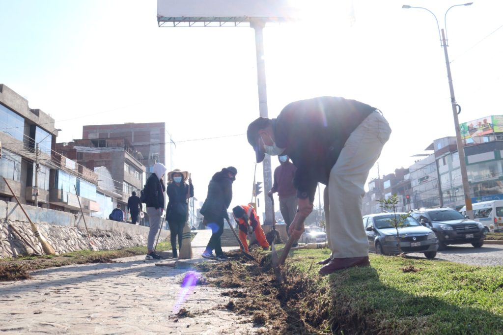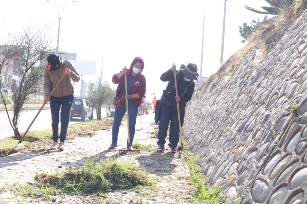 Continuando con las actividades por los 78 aniversario del distrito de El Tambo, la municipalidad realizó una jornada de limpieza y mantenimiento de áreas verdes en 4 puntos del distrito.