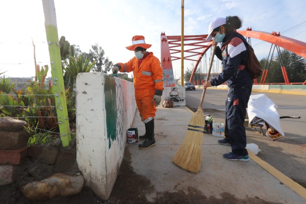 Provisto de herramientas, como; picotas, rastrillos, costales, mantadas, espátulas, brochas, rodillos entre otros, realizaron el trabajo, de limpieza de las áreas verdes, limpiado de postes, retiro de posteras y pintado, labor que ejecutaron de manera coordinada entre el personal administrativo y funcionarios de línea de las diversas gerencias.