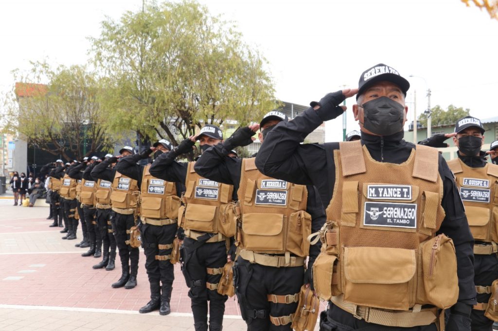 El cuerpo de serenazgo del distrito de El Tambo, celebró su XIV aniversario de creación y servicio a la población con una ceremonia protocolar que se desarrolló en el parque Bolognesi, donde el alcalde Carlo Curisinche resaltó la labor que ejecuta el personal, ya que su razón de ser es la de servir a la ciudadanía.