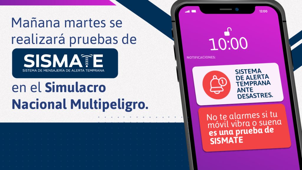 El Ministerio de Transportes y Comunicaciones (MTC) participará en el Simulacro Nacional Multipeligro, que realizará el INDECI, el martes 31 de mayo, a las 10 a.m., con la herramienta de comunicación denominada Sistema de Mensajería de Alerta Temprana de Emergencias (SISMATE).