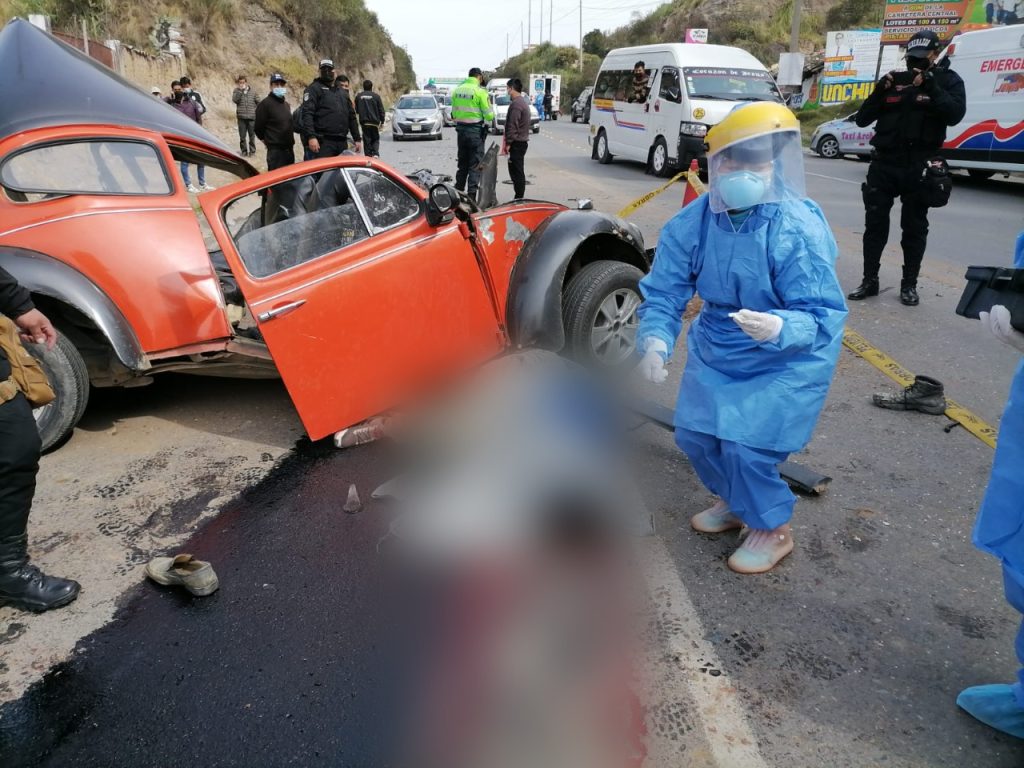 El triple choque se suscitó entre el wollswagen de placa C40-189 con 4 pasajeros en su interior, la combi de la empresa Grand Group de plaza W1k-737 y un auto blanco que según testigos iba a toda velocidad y habría ocasionado el accidente, el mismo que se dio a la fuga. A unas horas de lo sucedió la Fiscalía procedió a realizar el levantamiento de cadáver de Wilmer Quilva Medina de 35 años, ante el dolor de sus familiares.