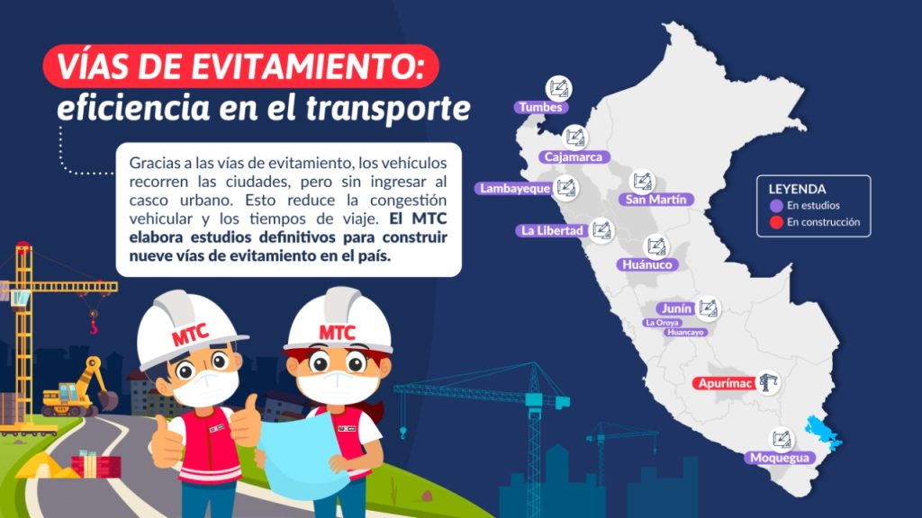 En tanto, el término de los estudios para la construcción de las vías de evitamiento en Moquegua, San Martín y Tumbes está programado para el año 2023.