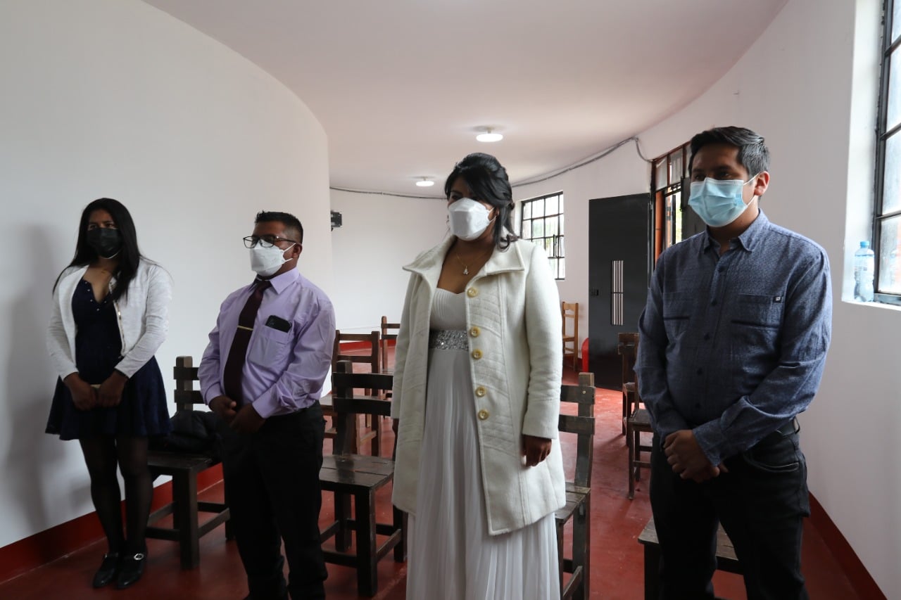 Carmencita Arellano Huamán, jefe de la Oficina de Registro Civil, detalló que durante la ceremonia solamente pueden participar 10 invitados, 2 testigos y los contrayentes, respetando el distanciamiento, el uso de las mascarillas y el control del carné de vacunación con las dosis respectivas.